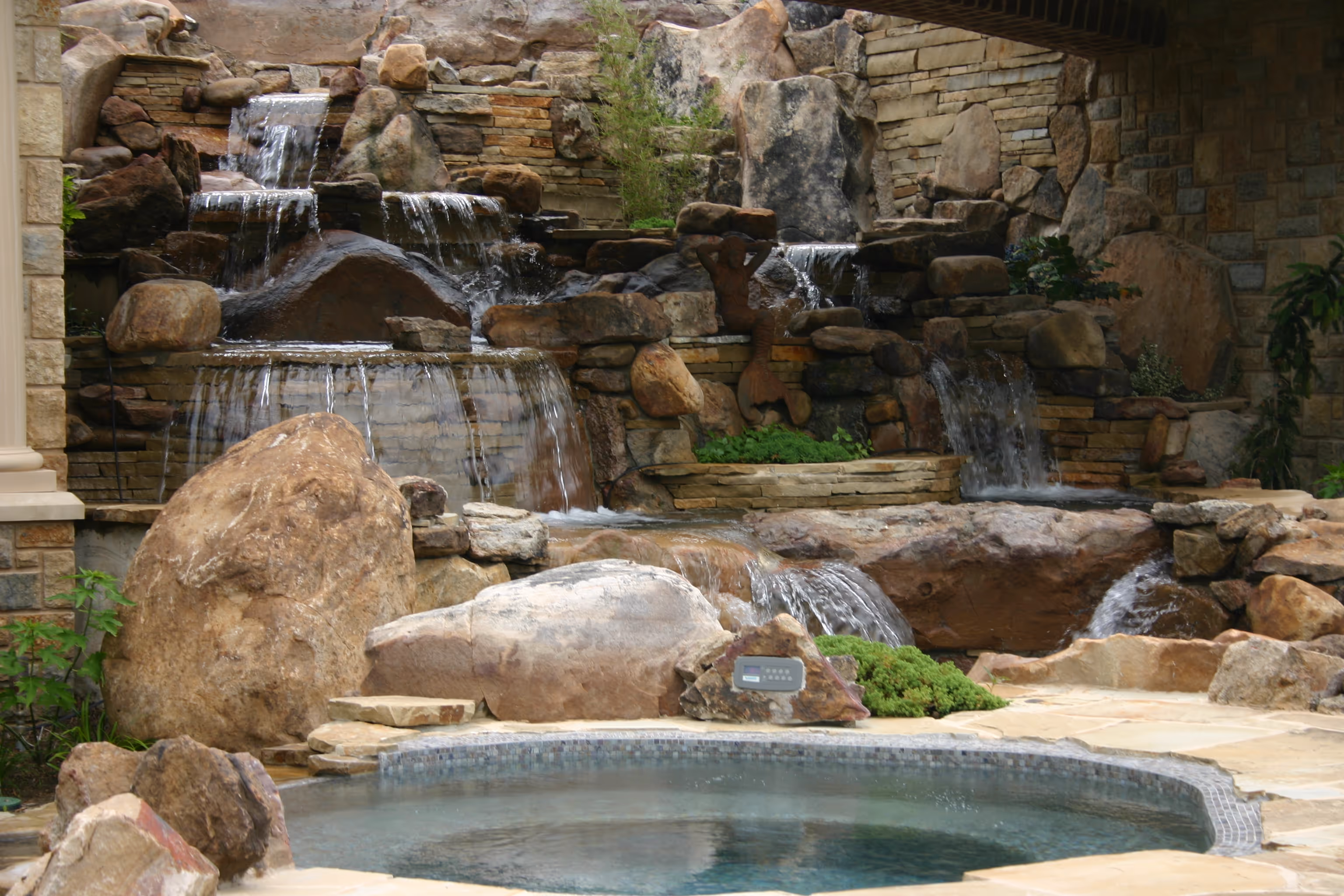 The customers were initially reluctant to upgrade the watershape to such a dramatic extent, and we began by backing out several exciting features and design touches that kept the budget down without compromising the visual appeal of the proposed installation. One by one, however, the clients reinserted all the omitted features and the result has been the inclusion of all components of the original design.